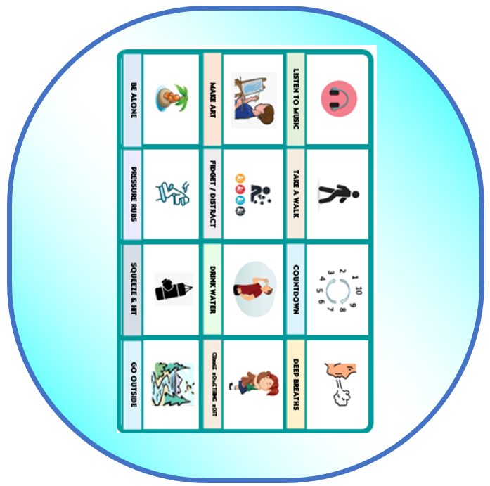 Big Words for BCBA's: Display a variety of choices to guide de-escalation. Read a script to teach important concepts regarding de-escalation to interrupt internal catastrophizing.